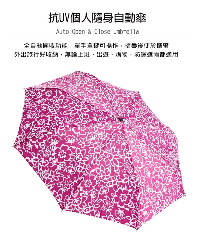 博客來 Rainstory 桃色花漾抗uv隨身自動傘